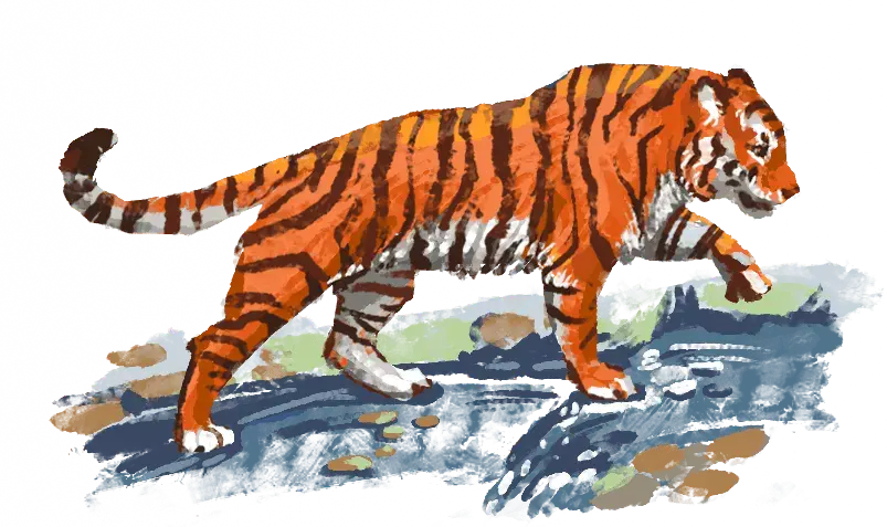 — Этого тигра зовут Амур. Он рассказал, что амурские тигры занесены в Красную книг у России, в которой пишут о животных и растениях, находящихся под угрозой вымирания. Люди чуть не истребили всех амурских тигров, но потом вс ё-таки одумались и стали их защищать. Сейчас в мире уже около шестисот братьев, сестёр и других родственников Амура.