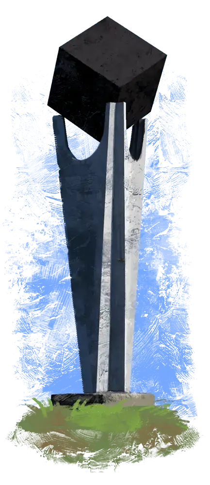 Маленький северный оленёнок Лёня обожал путешествовать вместе с ребятами. Вот и сейчас его волшебные нарты уже были готовы домчать Варю и Ваню за секунды в любую точку на карте. Ребята зажмурились — миг! — и они уже стоят на площади, посреди которой возвышается стела — огромная, а на её верхушке — чёрный кубик.