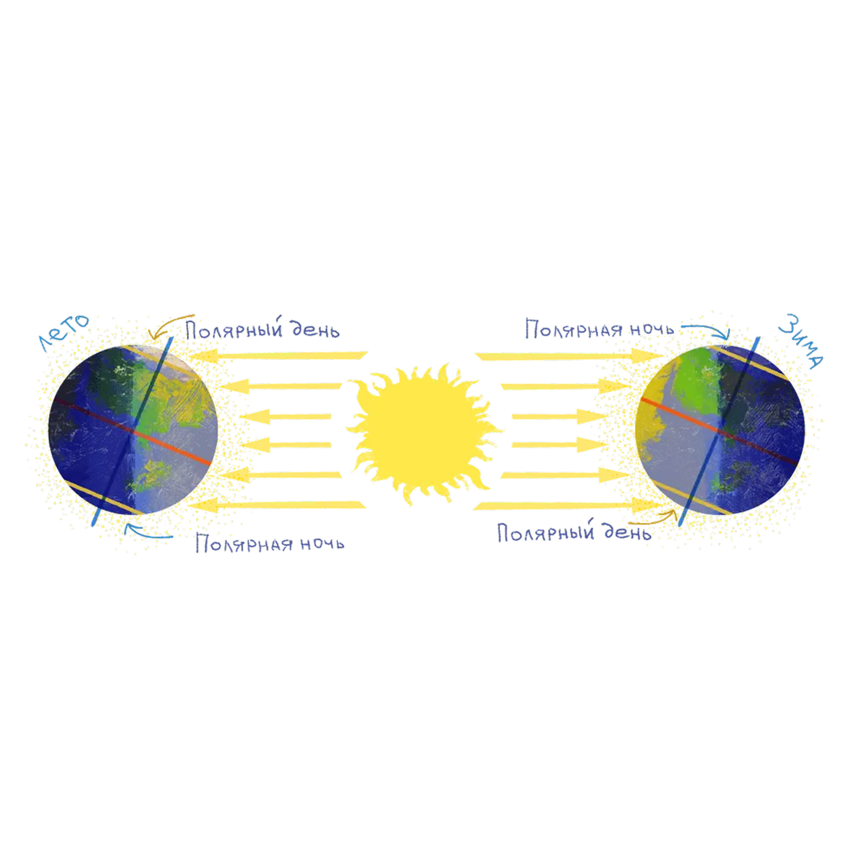 — Подожди-подожди! —воскликнул Ваня. — Я еще хотел спросить про полярные день и ночь. Я слышал такие формулировки. Что, за полярным кругом — день и ночь какие-то другие, от наших отличаются?
